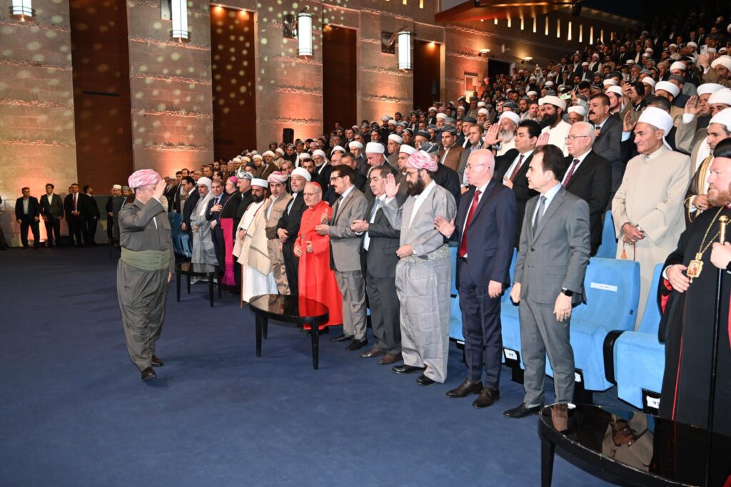 ئیڕۆ ڕۆژا شەمبوویێ،18ـی چریا ئێكێ 2025، سەرۆك مەسعود بارزانی ل هەولێرێ دگەل مامۆستا و زانایێن ئایینێ ئیسلامێ و كەسایەتیێن پێكهاتەیێن دی یێن ئایینی یێن هەرێما كوردستانێ كۆمبوو و بەحسا پێكڤەژیانێ ل كوردستانێ كر.