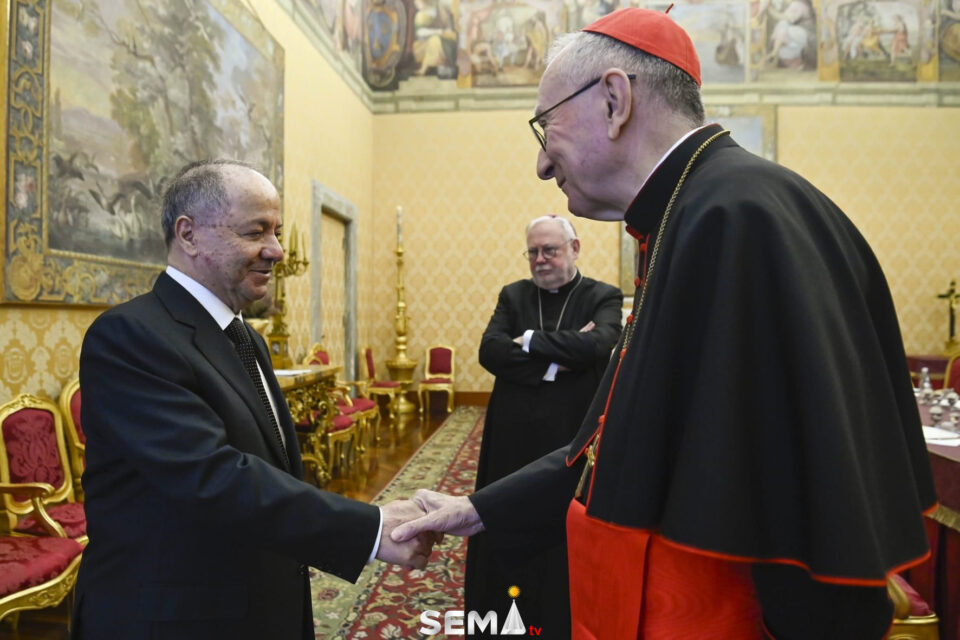 د ڕاگەهاندنەکێدا بارەگایێ بارزانی بەلاڤکر؛ د چارچۆڤێ سەرەدانا سەرۆك بارزانی دا بۆ ڤاتیکانێ، ئەڤرۆ چارشەمبی 21ێ کانوونا دوویێ یا 2026ێ، سەرۆک مەسعود بارزانی دگەل پیتڕۆ پارۆلینی، سەرۆکوەزیرێن ڤاتیکانێ کۆمبوو.