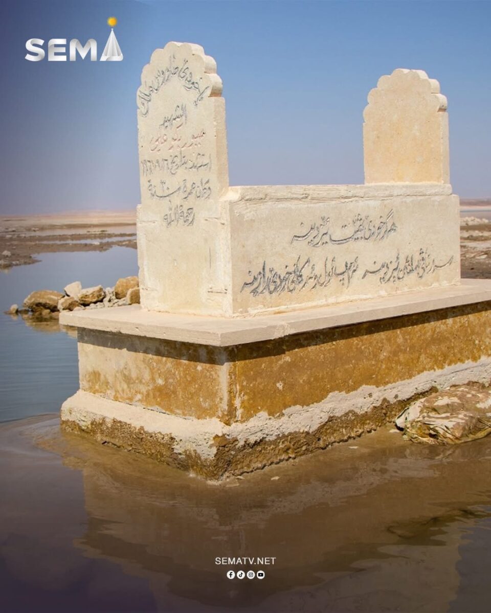The receding waters of the Mosul Dam have uncovered the submerged village of Old Khanke, revealing a martyr’s grave from 1961 along with the remarkable discovery of an ancient city and a Hellenistic-era cemetery.