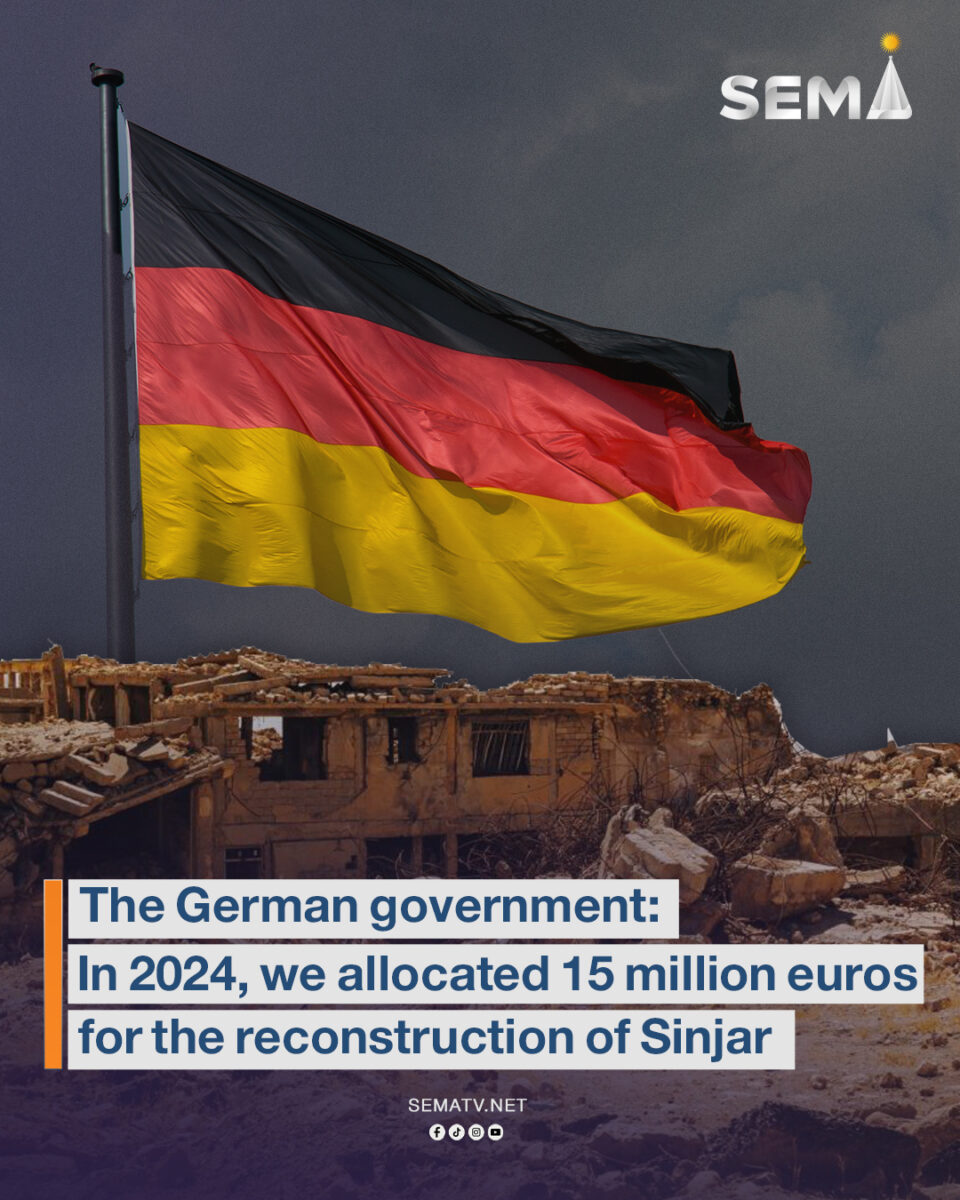 Germany has allocated €15 million (approximately $17.5 million) in 2024 to support reconstruction efforts in Shingal (Sinjar)—the historical homeland of the Ezidi people—aiming to facilitate the return and reintegration of displaced Ezidis, according to a statement from the German Federal Ministry for Economic Cooperation and Development (BMZ) on Sunday.